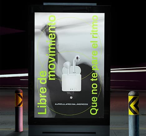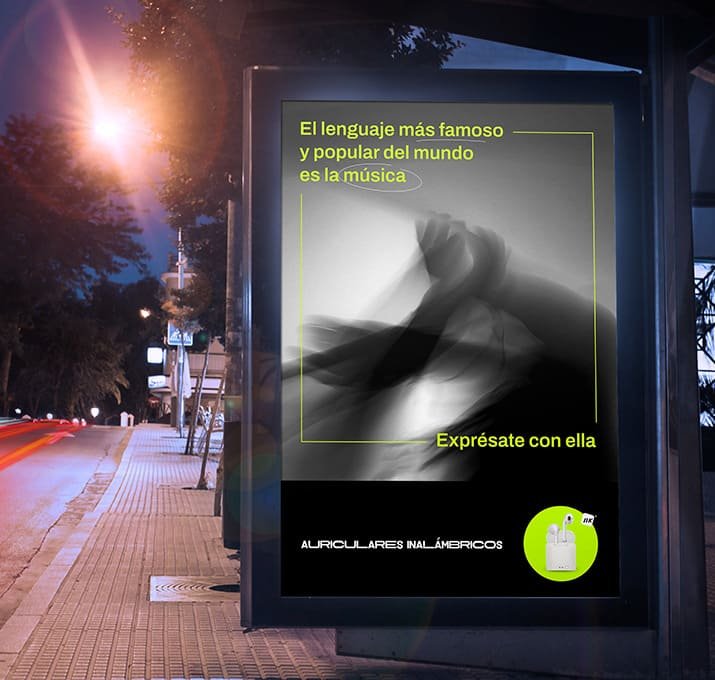 Por ello ejecutamos la campaña mostrando diferentes carteles con un mensaje llamativo. En cada uno de ellos queríamos mosotrar estados de animos que puedes llegar a tener cuando escuchas música y las grandes posibilidades que te dan unos auriculares inalámbricos. Llegando así a todos aquellos que disfrutan la música en su dia a dia.